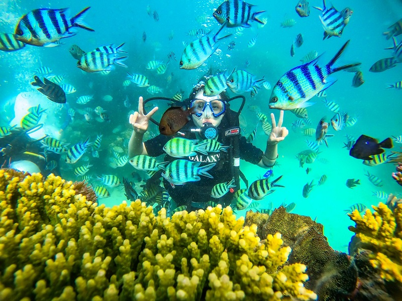 Nếu chọn lặn bình khí (scuba diving) hoặc đi bộ dưới đáy biển, bạn sẽ được huấn luyện ngắn trước khi xuống nước và luôn có người kèm. Các tour chuyên nghiệp đều ưu tiên an toàn nên bạn không cần quá lo lắng.