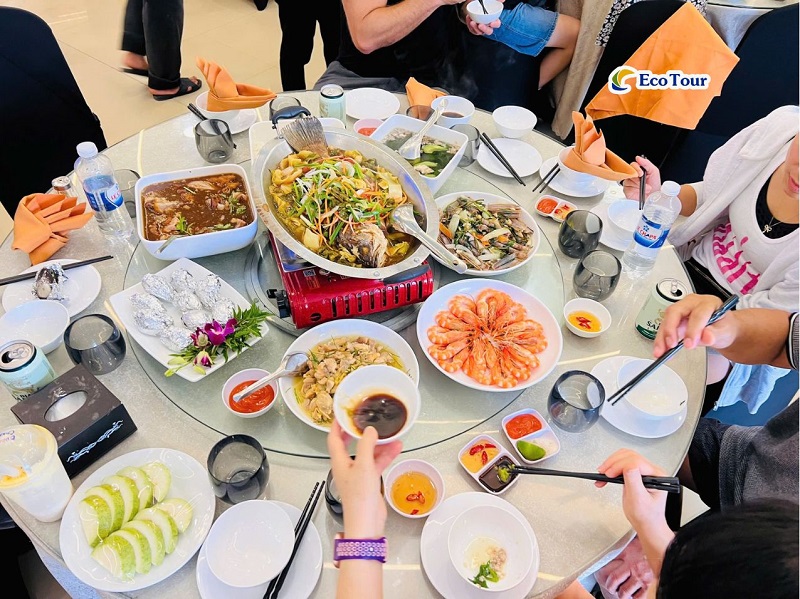 + 11h30: Quý khách thưởng thức bữa ăn trưa tại nhà hàng Hạ Long với rất nhiều món ăn ngon đậm hương vị vùng biển.