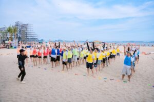 Sau đó, đoàn sẽ di chuyển đến bãi biển Hồng Vàn – bãi biển đẹp và sạch nhất đảo Cô Tô với biển xanh, cát trắng mịn, nắng vàng rực rỡ.